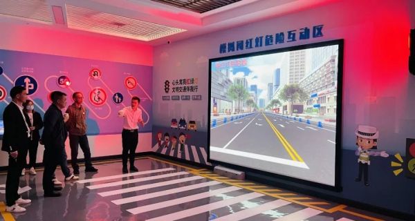 模擬闖紅燈危險互動區(qū)設(shè)置了真實的信號燈,當(dāng)信號燈為綠色時,參觀者可以正常通行,但當(dāng)信號燈為紅色時,系統(tǒng)檢測到有行人通過時,畫面將呈現(xiàn)慘烈碰撞場景并伴有車輛緊急剎車聲效,讓參觀者切身體驗到闖紅燈的危害,特別對于當(dāng)前的手機低頭一族,大家需時刻保持文明交通安全的觀念。