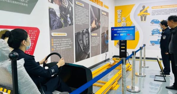 駕駛位置安全帶機構(gòu)和虛擬場景的模擬重現(xiàn),通過滑軌加速度模擬真實的撞擊感受,模擬安全氣囊正常打開,從而起到保護作用。讓參觀者真實體驗到安全帶在駕駛過程中的重要作用及不系安全帶的危害。
