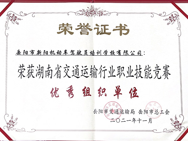湖南省交通運輸行業(yè)職業(yè)技能競賽優(yōu)秀組織單位